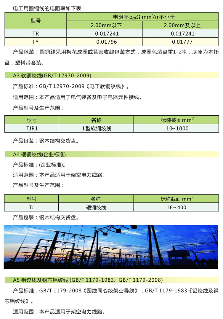一、產品標準 GB/T1179-2008《圓線同心絞架空導線》;GB/T1179-1983《鋁絞線及鋼芯鋁絞線》。