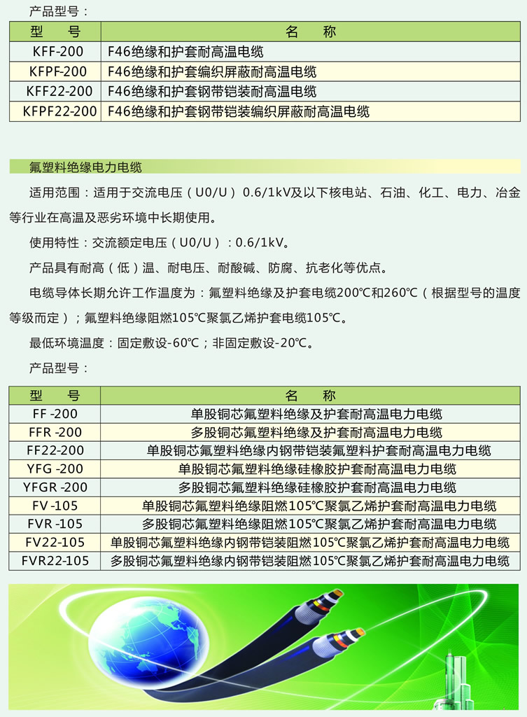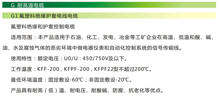 二、使用范圍 本產(chǎn)品適用于高溫環(huán)境下額定電壓450/750v及以下控制、信號(hào)、保護(hù)及測(cè)量系統(tǒng)接線之用。