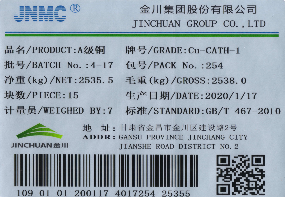 金川集團(tuán)兩個(gè)A級(jí)銅品牌成為上期能源首批國(guó)際銅期貨交割商品